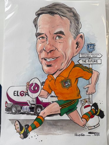 He has also completed a number of Retirement drawings. Each time capturing a different themes of the recipients. Including parts of the business & their passions or hobbies. The individuals have loved it.“
